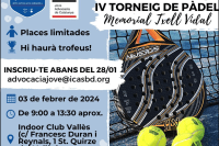 Torna la 4a edició del Torneig de Pàdel ‘Memorial Txell Vidal’ organitzada per @jovesicasbd i @joveadvocaciacatalunya 📆 Serà el dissabte 03 de febrer… Read more Torneig de Pàdel “Memorial Txell Vidal”
