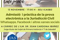 El passat 13 de novembre a les 17h, JAS va organitzar el que és ja el format més habitual i… Read more 8è Cafè Jurídic: Admissió i pràctica de la prova electrònica a la jurisdicció civil